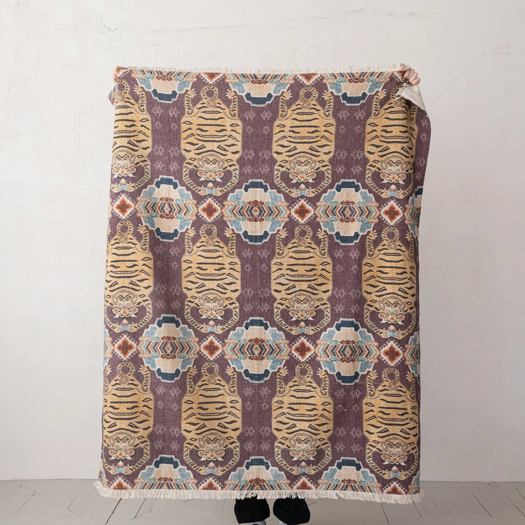 Tibetan Tigers Throw w/ Pattern & Fringe