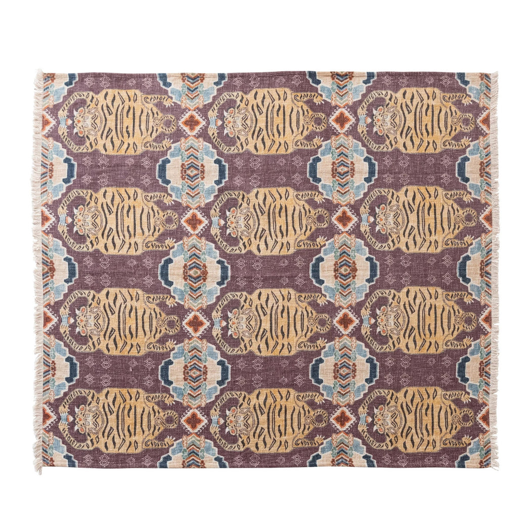 Add a chic touch to any couch with this soft cotton tiger throw adorned with fringe at the ends.