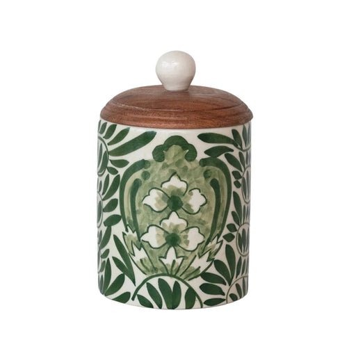Sunset Villa Stoneware Canister w/ Design & Acacia Wood Lid