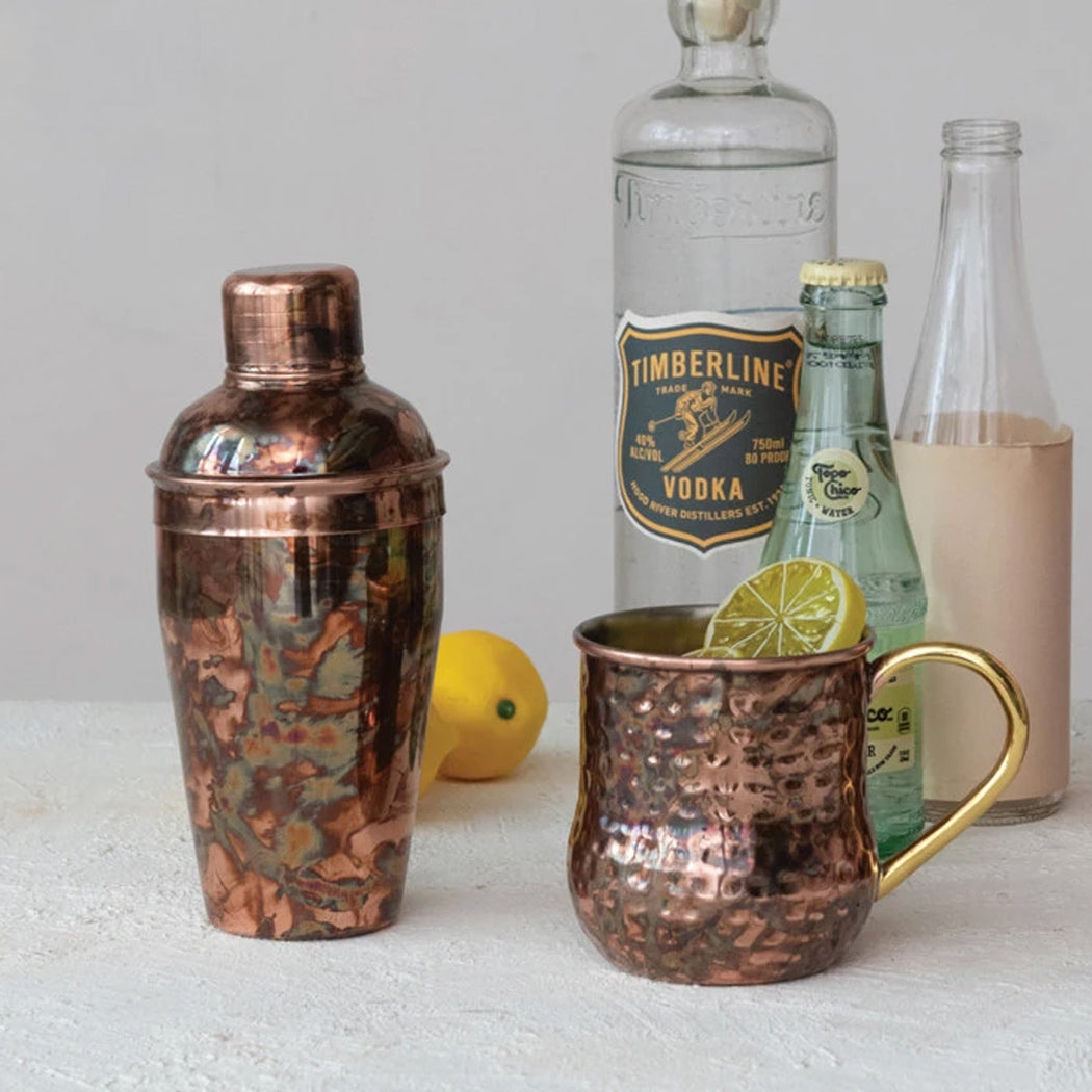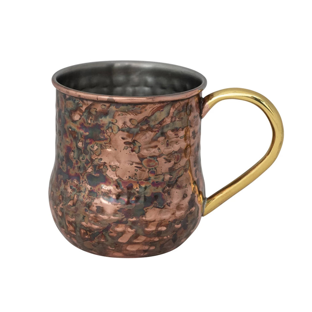 This stainless steel mule mug with its brass handle and oxidized finish is great for any drink: day or night.