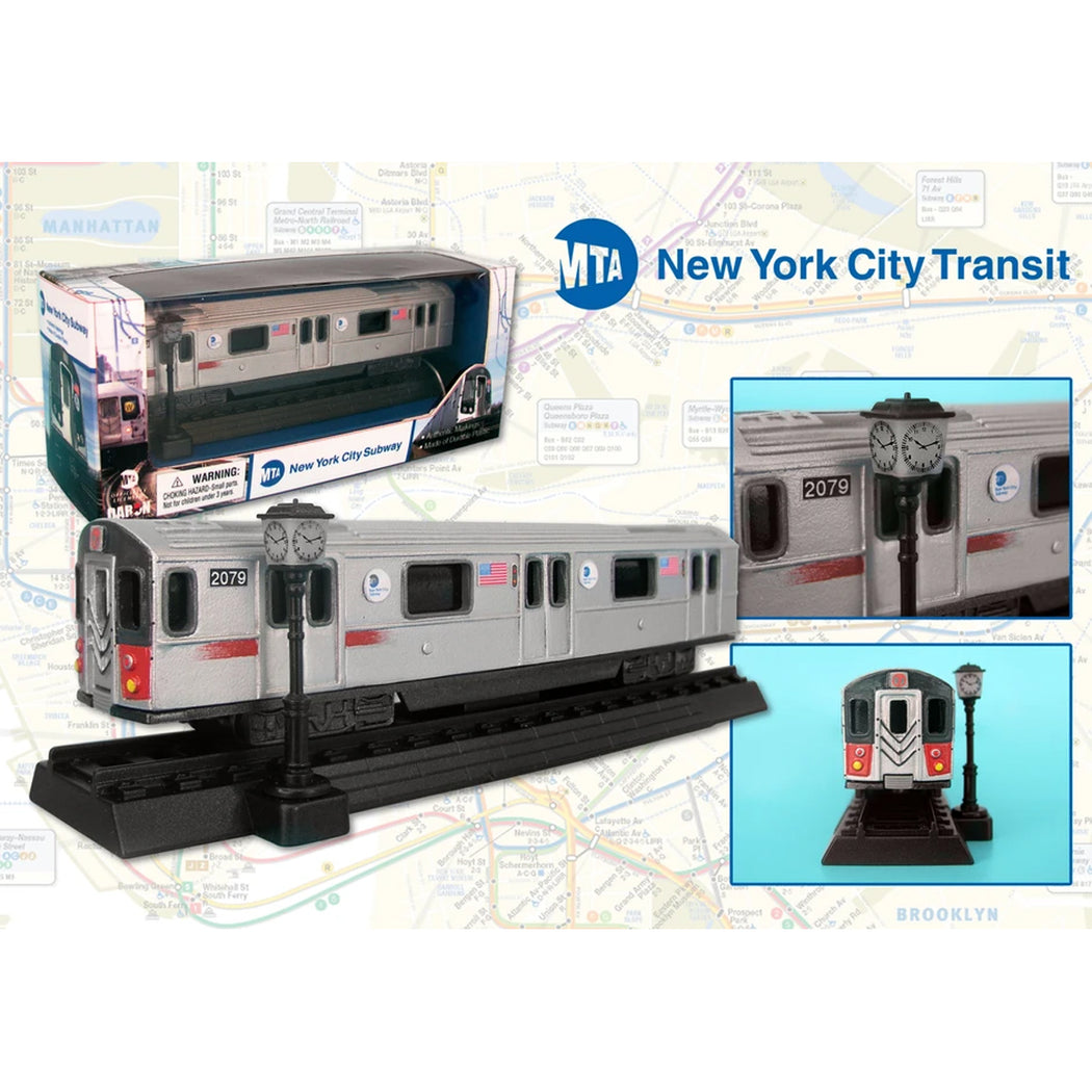 This MTA subway car is made of die cast metal and includes stickers that let you change the train to your favorite line!