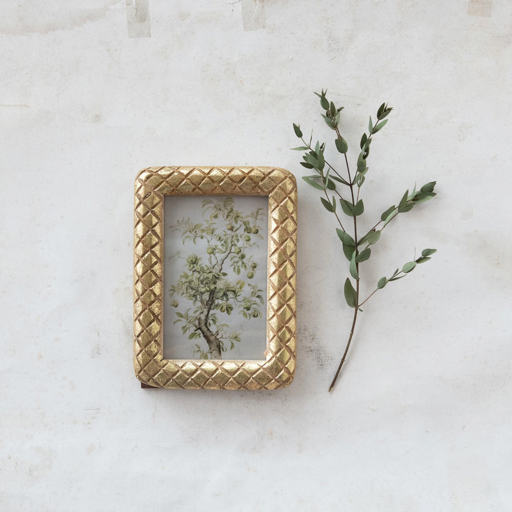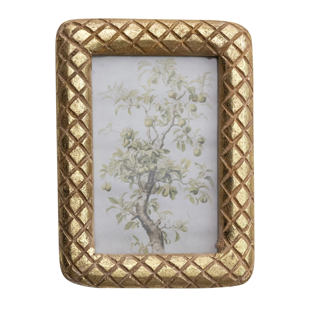 Add a touch of elegance to your wall art with this captivating carved wooden frame adorned with a gold finish.