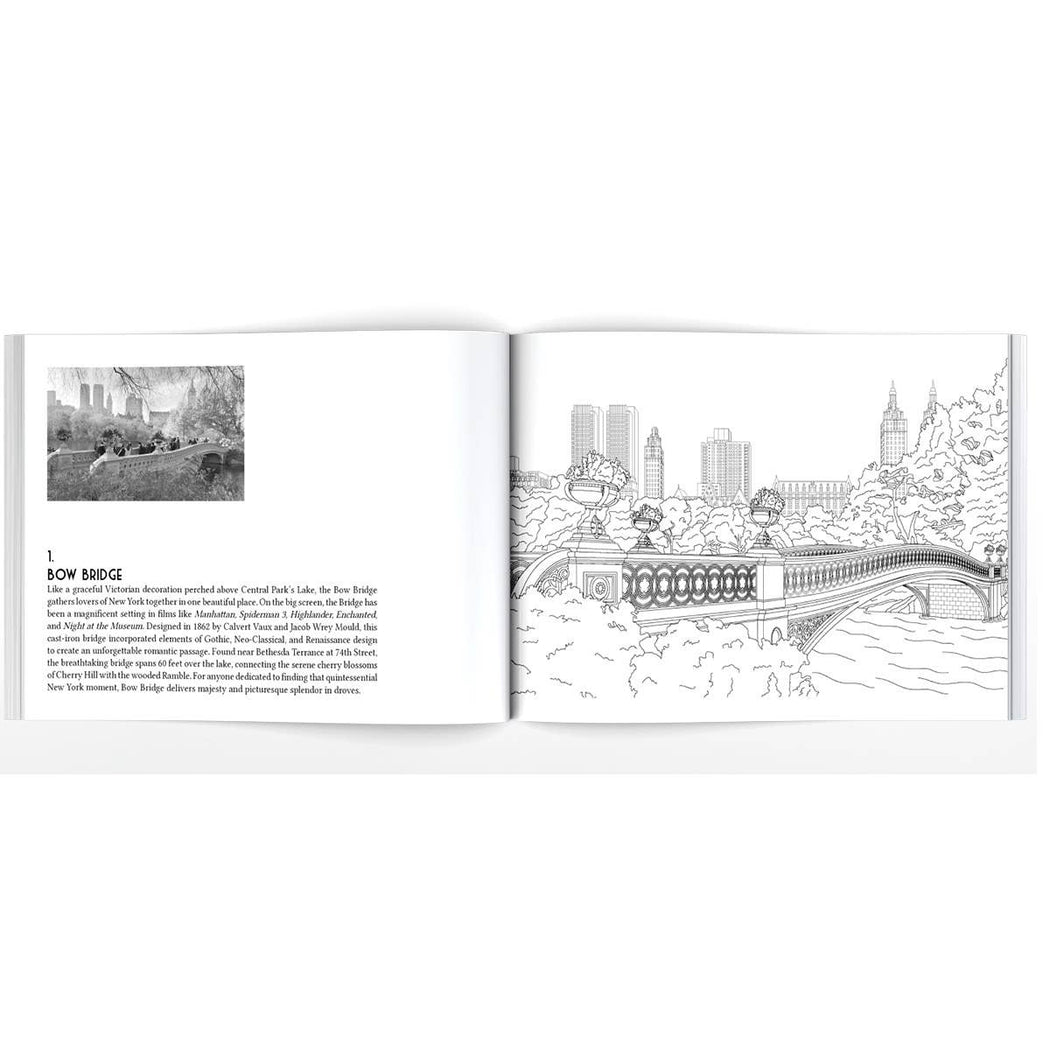 Color Central Park is filled to the brim with 20 of the park’s most iconic settings, such as Wollman Rink, Belvedere Castle, and Bow Bridge, among many others. Through its beautifully illustrated line drawings and detailed descriptions, “Color Central Park” masterfully highlights what makes this beautiful oasis of greenery so special to the Big Apple.
