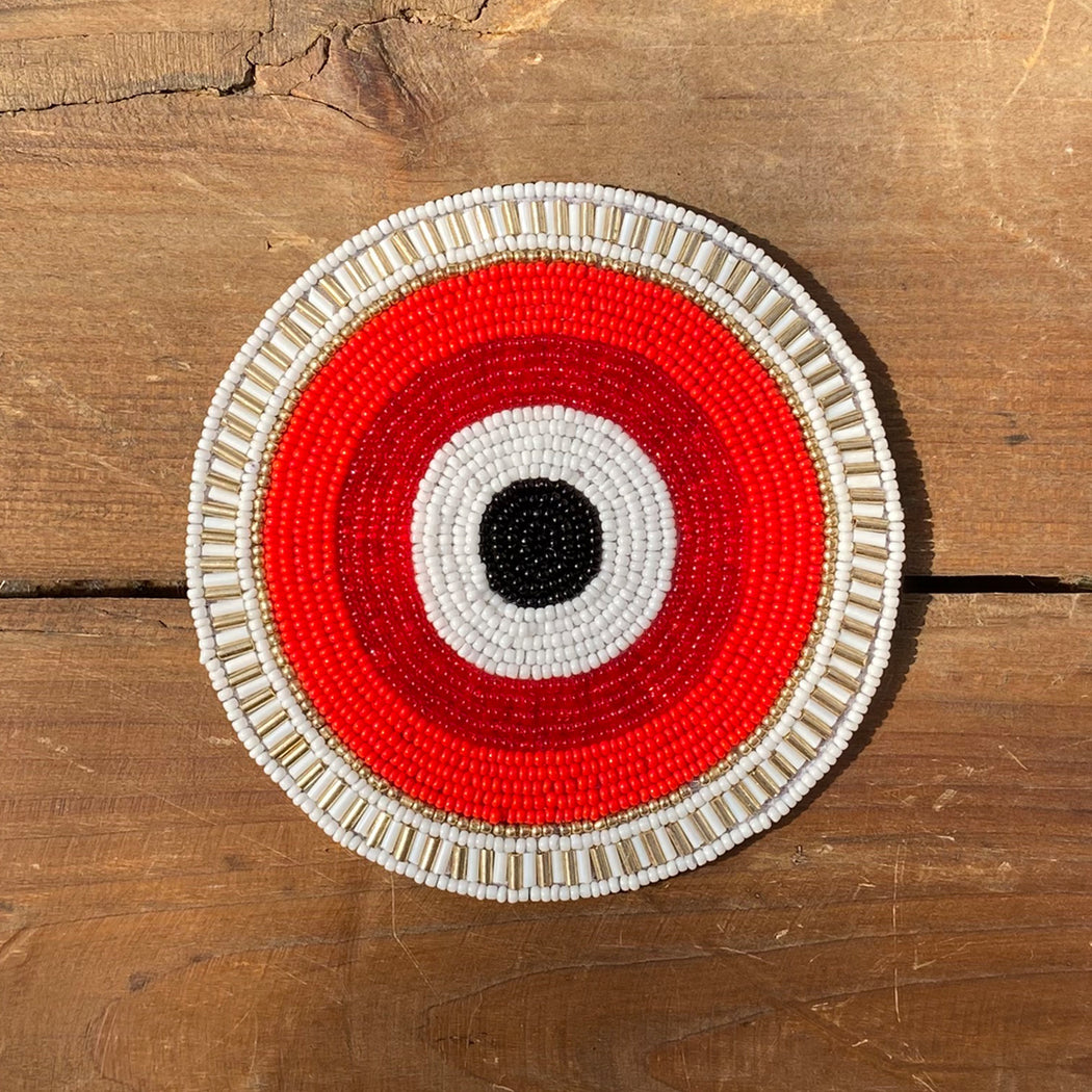 These exclusive to Lockwood hand-beaded Evil Eye Coasters are such a fun addition to any bar, coffee table, or kitchen. A red evil eye is specifically believed to bring protection, strength, and courage.
