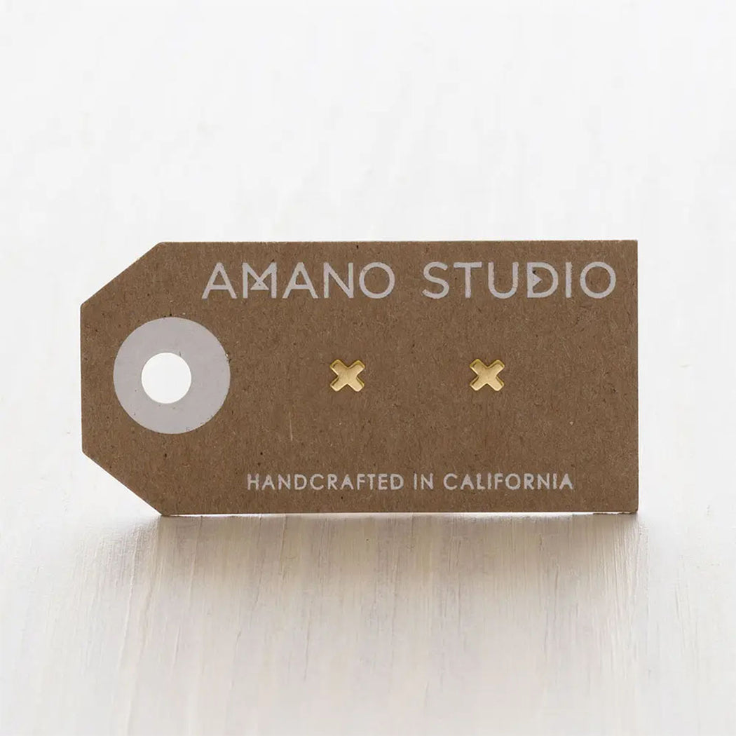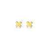 Small (1/4") but kinda edgy and rock n roll, these tiny X studs are great in a stack or on their own. They are made with vintage tooling and recycled brass. Made of brass with a heavy (7-10 mil) 24k gold.