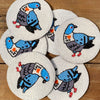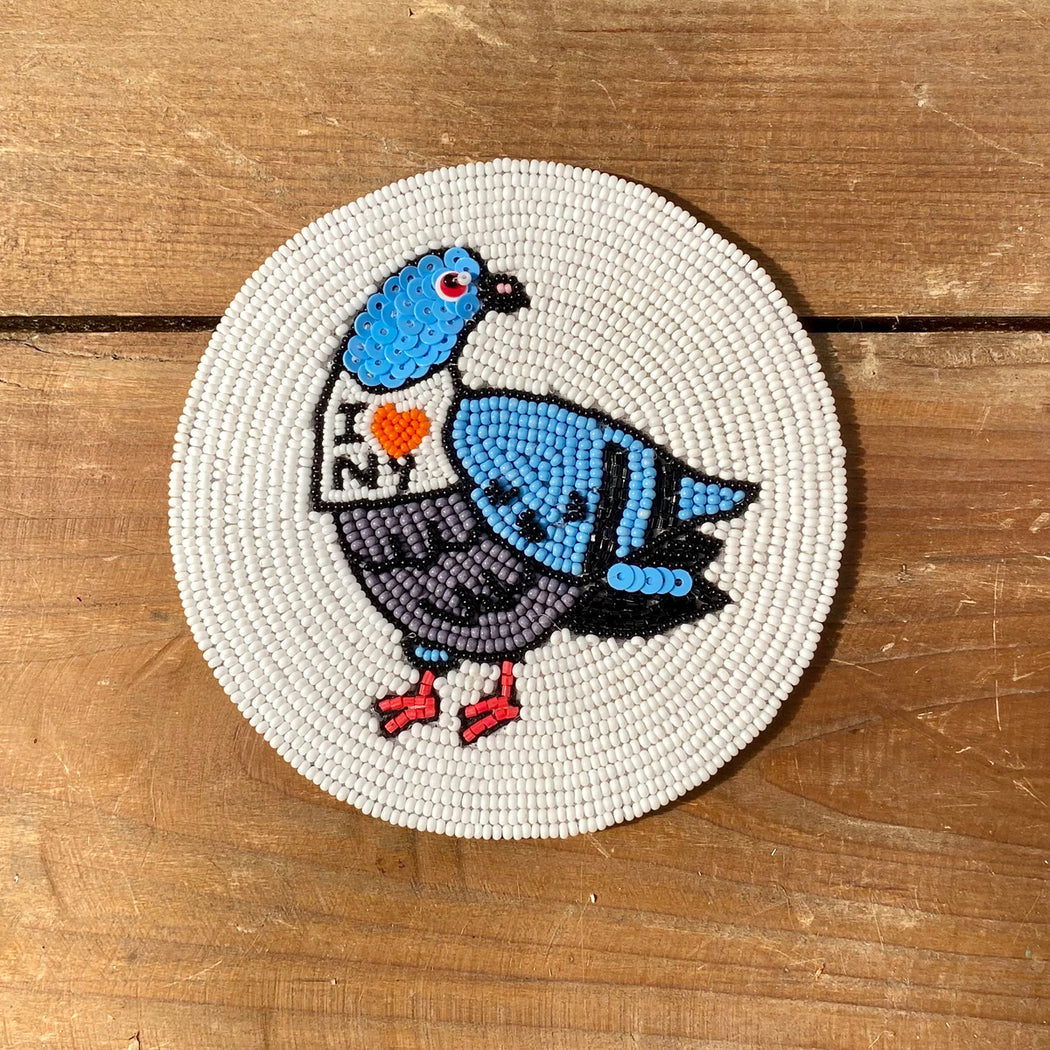 These exclusive to Lockwood hand-beaded Pigeon Coasters are such a fun addition to any bar, coffee table, or kitchen.