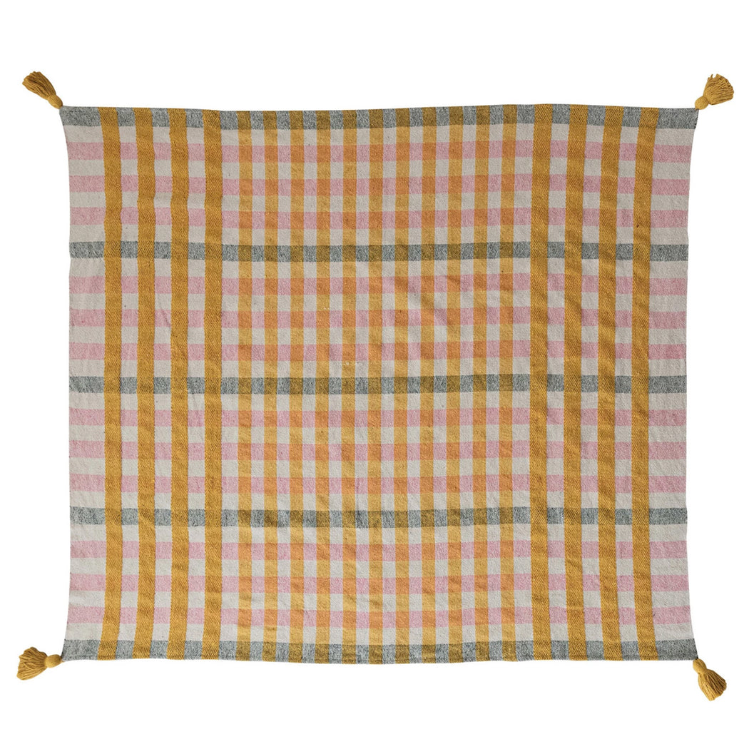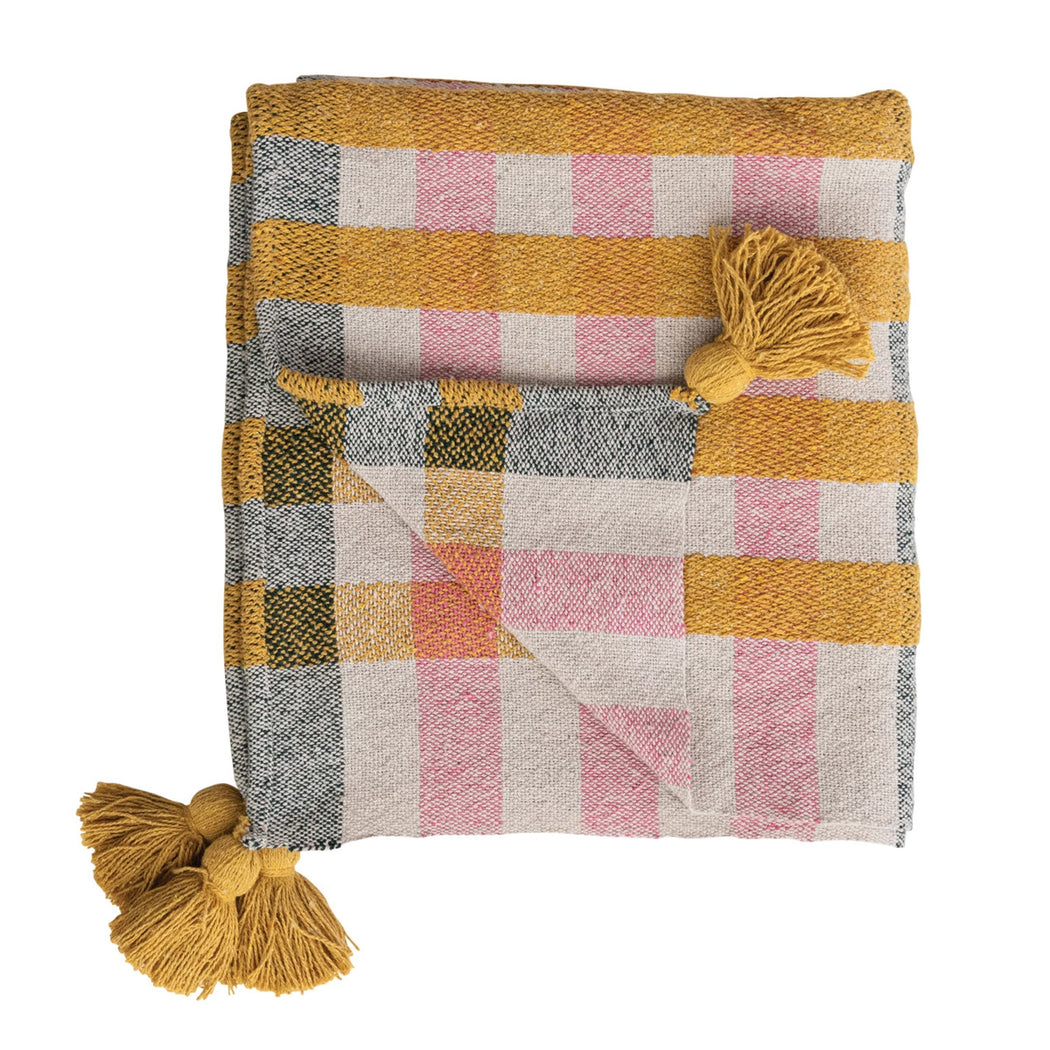 Plaid Recycled Cotton Jacquard Throw w/ Tassels