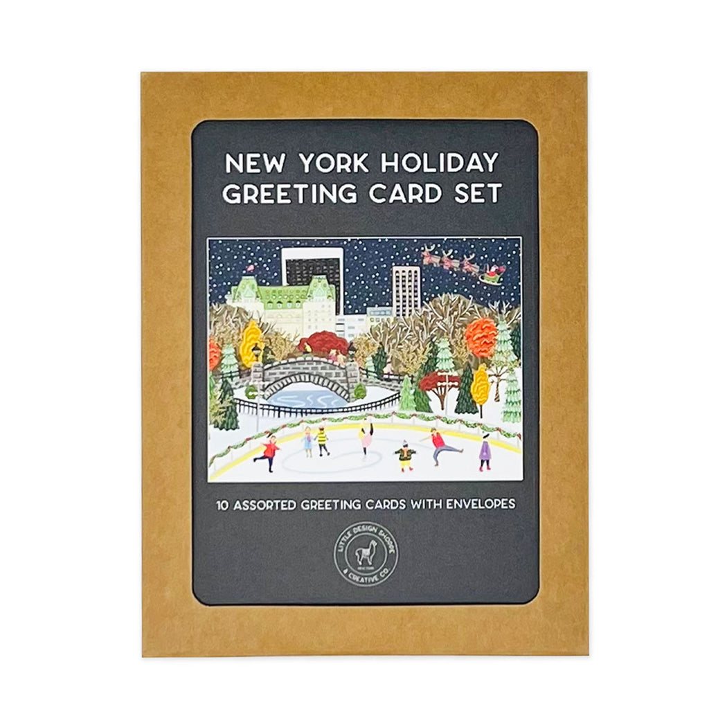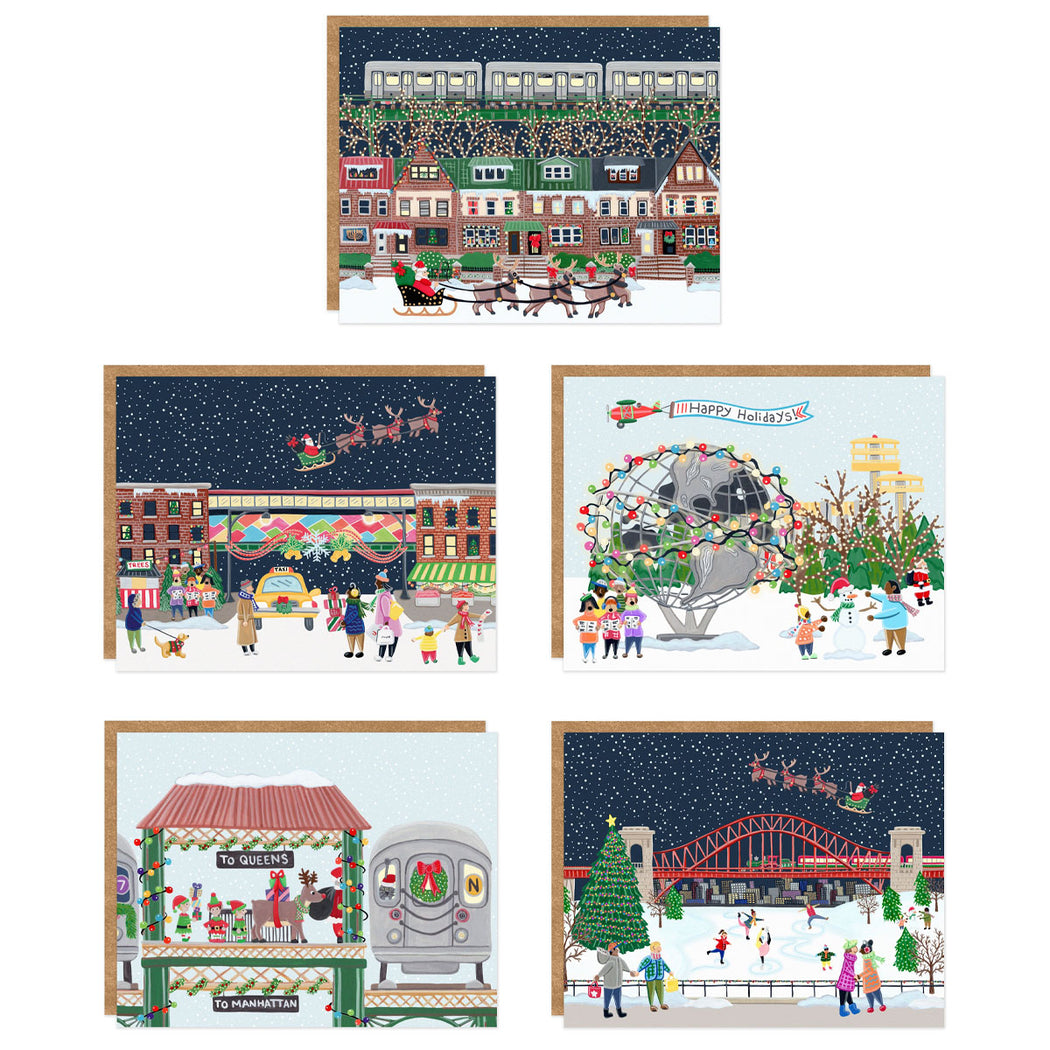 Created by little design shoppe & creative Co. in astoria, these greeting cards feature Hand-painted designs that celebrate the holidays in queens. Set of 10 cards, with 5 different designs.