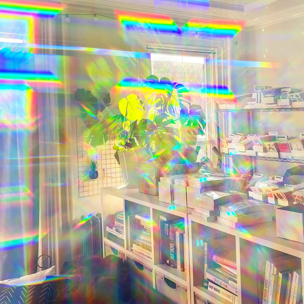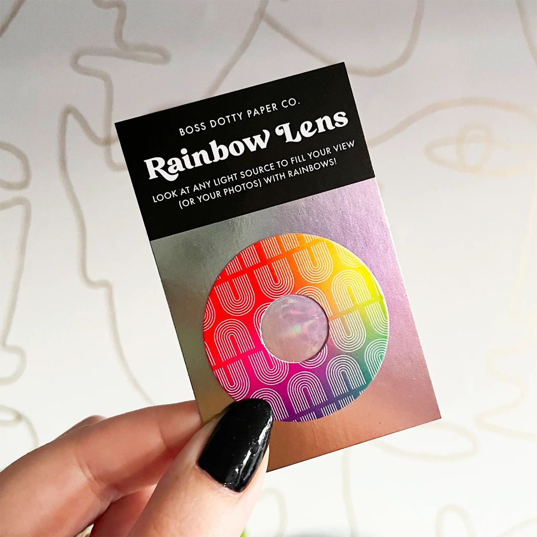 This pocket-sized rainbow lens is made with a special diffraction film that transforms light into a prism of rainbow hues!