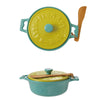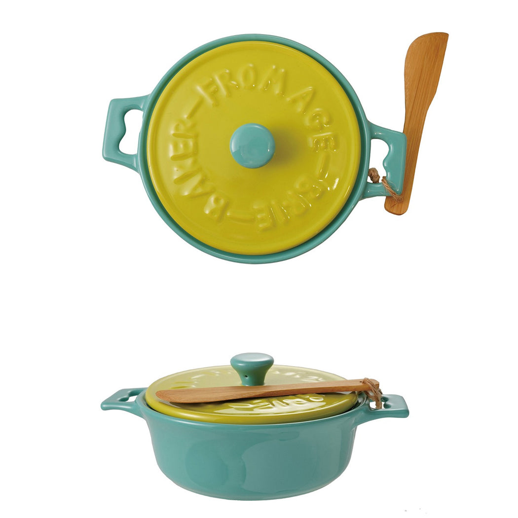 Stoneware Brie Baker w/ Wood Spreader, Blue & Green