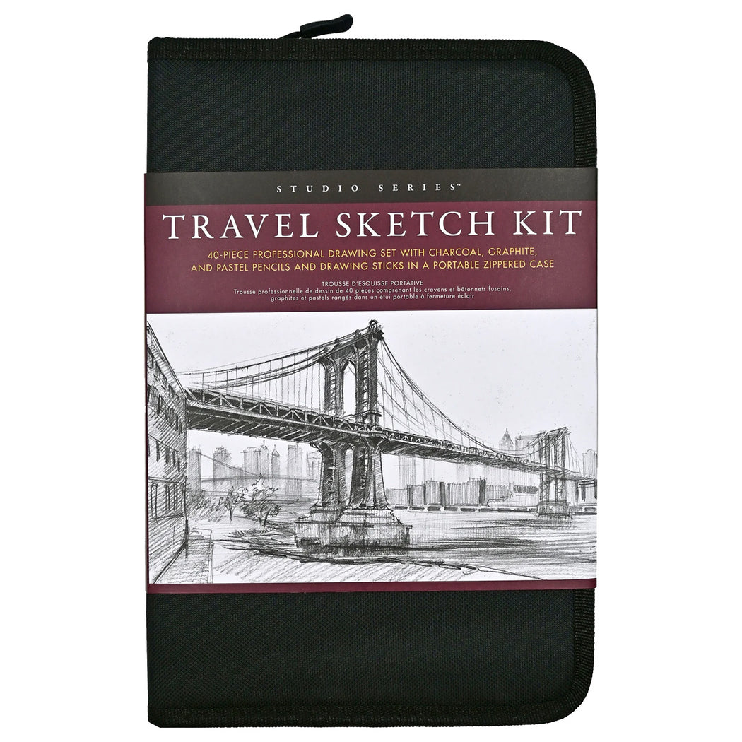 Attractive, portable, all-in-one 40-Piece Travel Sketch Kit lets you draw anytime, anywhere!