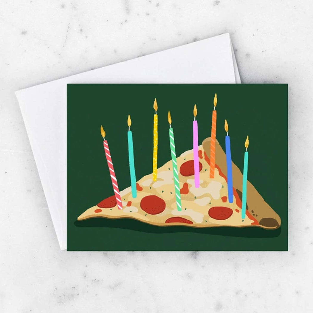 For those who prefer a savory slice on their birthday, (the elite) this colorful greeting provides!
