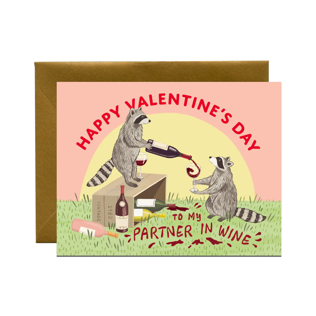 Raccoon Partner in Wine Valentine Card