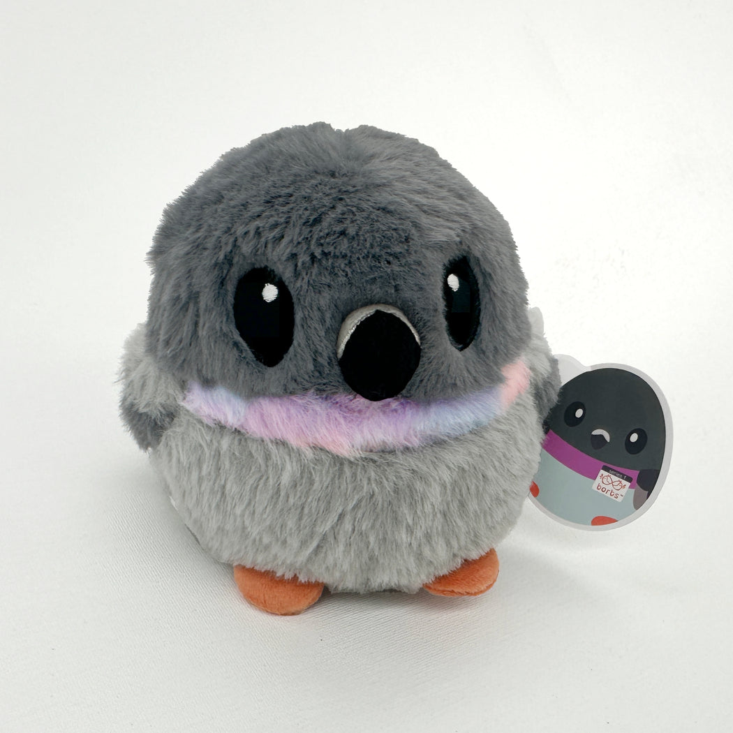 5" tall pigeon bird stuffed toy, designed to be a desk friend with fidget features!
