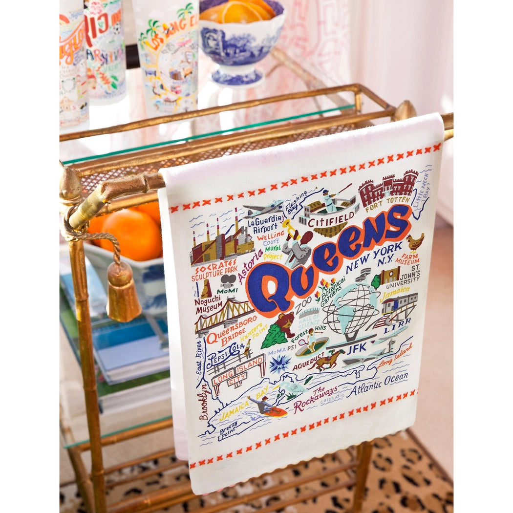 These hand embroidered dish towels are a perfect way to show that Queens pride!