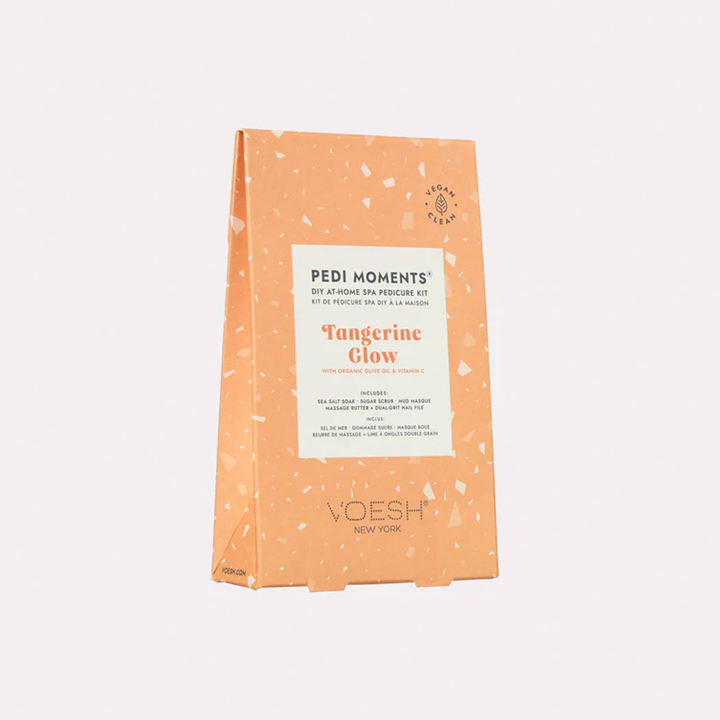 Indulge in self-care with Pedi Moments, a salon-worthy pedicure kit. The 4-step pedi treatment is a pampering journey: a detoxifying sea salt soak, a gentle exfoliating sugar scrub, a pore-cleansing mud masque, and a hydrating massage butter, providing all you need for a nourishing, blissful pedi at home.