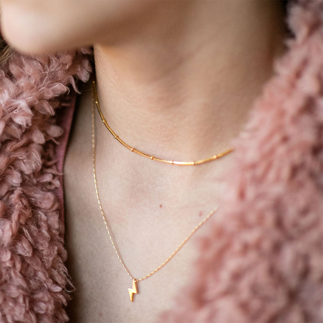 Tiny lightning bolt on fine 16" barley chain