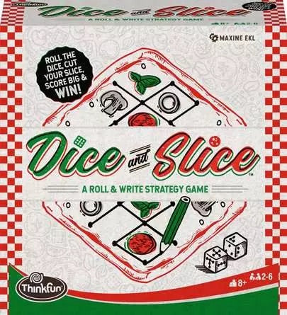 Welcome to Dice and Slice the hottest, most scrumptiously strategic dice game to ever come fresh from the oven. In Dice and Slice, it's a flavorful frenzy as players roll to dice and slice the largest pieces on their scoresheet. No other game lets you pit your mind and wit against friends, family, or pizza-loving strangers.
