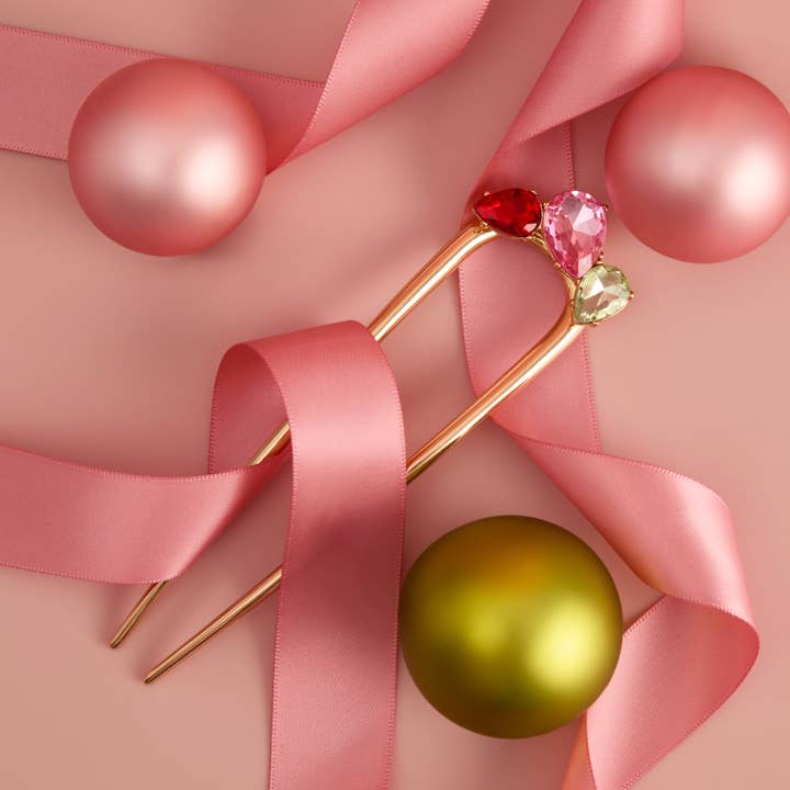 Meet your new go-to for chic, no-fuss styling: the Kitsch Metal Gemstone French Hair Pin – Red, Pink & Green. Designed for quick, elegant updos, this lightweight pin glides smoothly through your strands to secure buns, twists, or half-up styles in seconds. The shimmering red, pink, and green gemstones add just the right pop of playful color to elevate your everyday look.