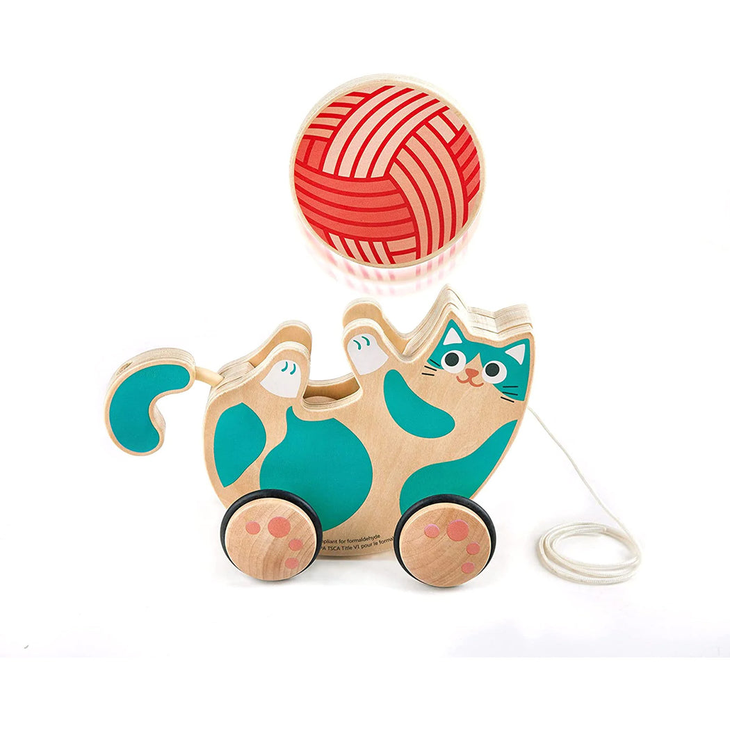 The Pull-Along Roll & Rattle Kitten is the perfect toy for your little ones aged 12 months and above! Watch as the rattle rotates slowly and the kitten's tail swings when they are pulled along on the string. Plus, the wool rattle ball can be easily removed and played with separately for even more fun!